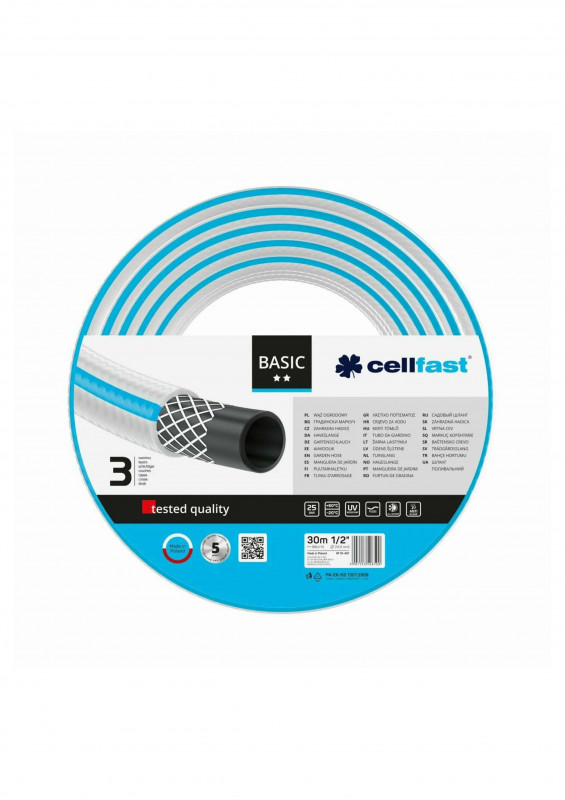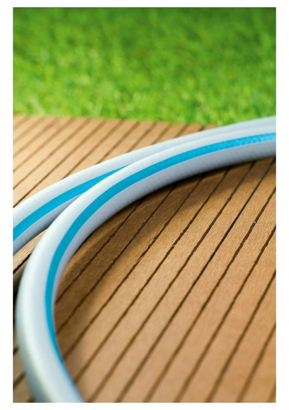 Трехслойный шланг. Полиэстровая крестообразная оплетка. Устойчив к УФ-излучению и нарастанию водорослей внутри шланга. Элестичный. Размеры 1/2, 3/4, 1 дюймаю. Давление разрыва 25 бара. Пределы рабочей температуры −20/+60°С. Гарантия в условиях правильной эксплуатации 5 лет.