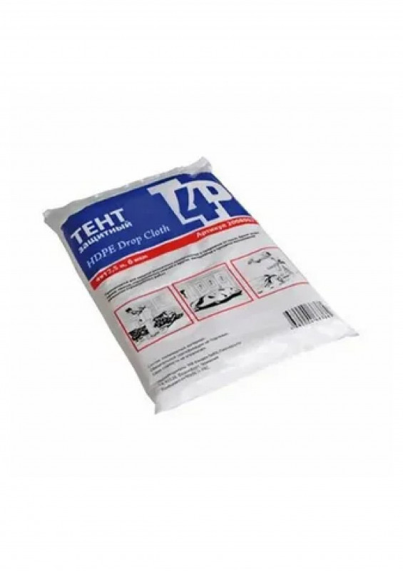 Тент применяется для защиты различных поверхностей и предметов от пылевых загрязнений, брызг воды, лакокрасочных и иных отделочных материалов при выполнении ремонтно-строительных работ. Размер: 4 х 5 м.
