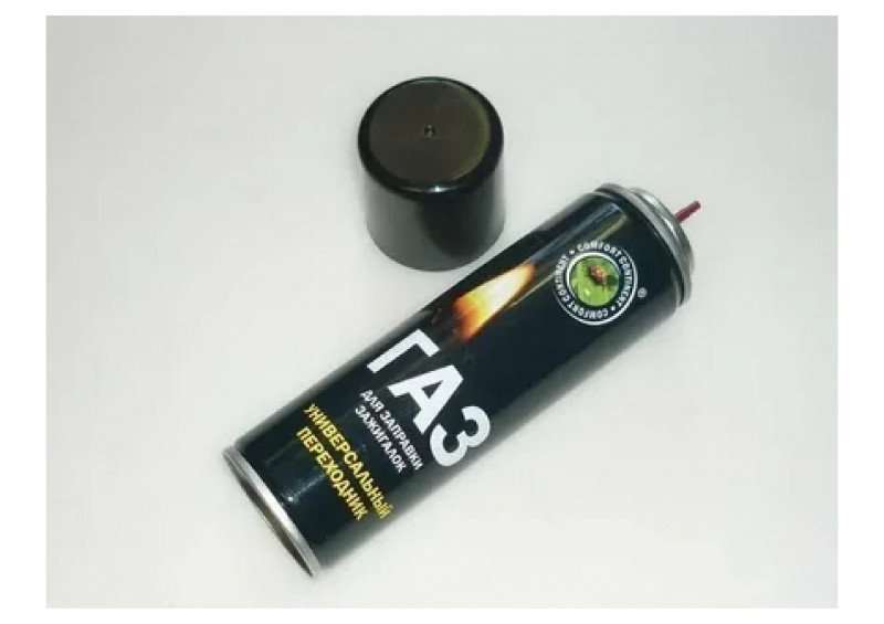 Предназначен для портативных газовых приборов (горелок, плит, ламп и т.д.). Газ для заправки зажигалок представляет собой очищенный сжиженный углеводородный газ. Предназначен для заправки газовых зажигалок.