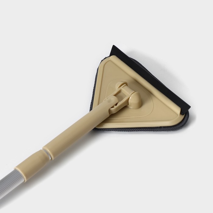 Установите скребок в верхнем левом углу окна и, прижимая к стеклу, ведите швабру сверху вниз, сгоняя воду и грязь, до нижнего края рамы.