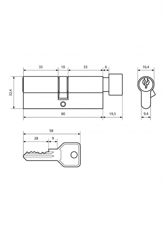 Механизм цилиндровый Z.I.80-5K СР 35х10х35 кл/кл Стандарт