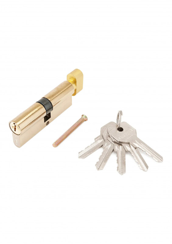 Цилиндровый механизм Стандарт устанавливается вместе с врезным замком. Запирание осуществляется с помощью английского ключа, который идет в комплекте в количестве 5 штук. Кулачок механизма выдвинут на 30 градусов от плоскости, что препятствует выбиванию цилиндра из двери.