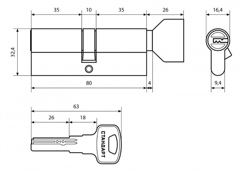 Механизм цилиндровый Z.F.80-5K SN 35х10х35 кл/кл Стандарт