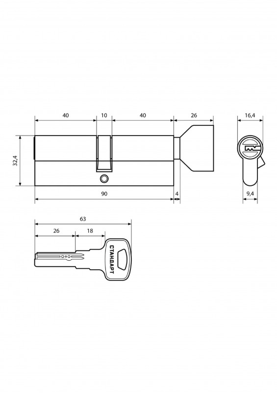 Механизм цилиндровый Z.F.90В-5K SN 40х10х40 кл/кл Стандарт