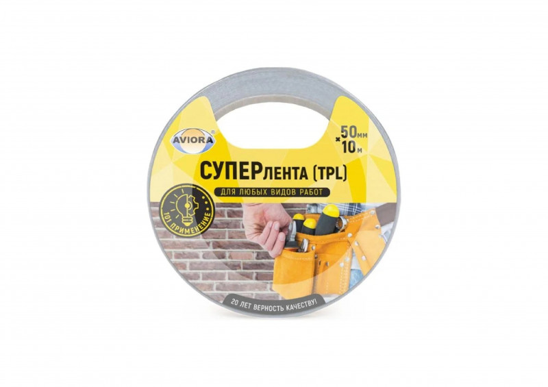 Армированная влагостойкая клейкая СУПЕРлента AVIORA TPL 50 мм, 10 м, серая 302-090 подойдет для проведения изоляционных и сантехнических работ. С помощью ленты можно герметизировать трубы и шланги, соединять между собой изделия или проводить мелкий ремонт. Полимерная лента серого цвета имеет армирующие волокна и покрыта с одной стороны клеем.