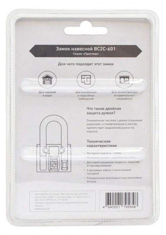 Замок навесной ВС2С-601 d-10,5мм Аллюр черный в наличии по цене 725 рублей в интернет-магазине «ЖЕЛЕЗО» в в Оренбурге. Мы предлагаем лучшую стоимость на категорию замок навесной. Приобрести Замок навесной ВС2С-601 d-10,5мм Аллюр черный можно оформив заказ в интернет-магазине, или отправив заявку по почте, а также по телефону 8 (800) 444-50-26 или в магазине. Бесплатная доставка при заказе от 1000 руб.