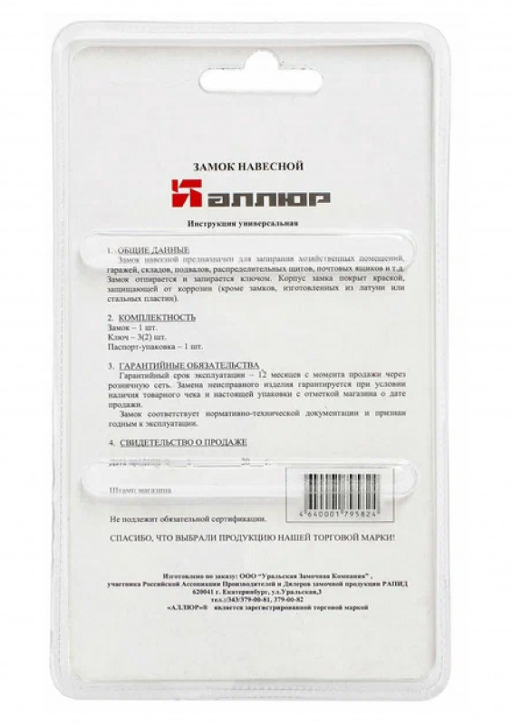 Замок навесной ВС2С-501 d-9мм Аллюр черный в наличии по цене 650 рублей в интернет-магазине «ЖЕЛЕЗО» в в Оренбурге. Мы предлагаем лучшую стоимость на категорию замок навесной. Приобрести Замок навесной ВС2С-501 d-9мм Аллюр черный можно оформив заказ в интернет-магазине, или отправив заявку по почте, а также по телефону 8 (800) 444-50-26 или в магазине. Бесплатная доставка при заказе от 1000 руб.