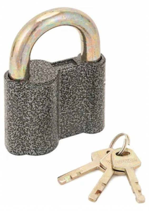 Замок навесной, корпус замка полностью закрывает дужку. Чугунный корпус, полимерное покрытие. Стальная закаленная дужка. Дисковый механизм секрета, 3 ключа с двойной нарезкой секрета. Конструкцией замка полностью исключен доступ к дужке, что защищает замок от вандализма и взлома. Форма корпуса замка исключает попадание воды в механизм секрета, не вызывая проблем с доступом в помещение в зимнее время.