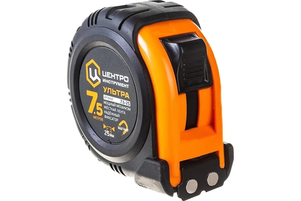 Пластиковый корпус с резиновым покрытием.Магниты в начале мерной ленты.Мощный автоматический механизм возврата мерной ленты.Фиксатор мерной ленты для удобства проведения измерений.Шкала мерной ленты с крупными цифрами для легкого считывания замеров.Стальная мерная лента.