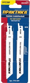 Пилки для лезвийной пилы S922BF BIM, по металлу, шаг 1,8 мм, длина 150 мм, 2 шт.ПРАКТИКА 773-569 предназначены для пиления тонкостенных металлических профилей, стали, пластика. Полотно биметаллическое. Тело изготовлено из инструментальной стали, зубья – из быстрорежущей стали Р6М5-МП. Волнистое полотно с фрезерованными зубьями обеспечивает высокую скорость пиления. Шаг зубьев 1,8 мм