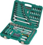 В комплект входят ручные инструменты, включая ключи, трещотки, головки, биты, удлинители, а также переходники, что делает набор по-настоящему многофункциональным. Благодаря широкому ассортименту, в этом комплекте вы сможете найти все необходимое для обслуживания техники, мелкого ремонта и сборки различных конструкций.