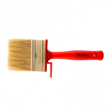 Кисть-ракля , 30 х 70 мм, с натуральной щетиной, пластмассовыми корпусом и ручкой, используется для малярных работ на участках большой площади, поэтому удобна для обработки стен, потолков и фасадов. Натуральная щетина устойчива к химическому воздействию, поэтому не деформируется и сохраняет упругость при работе с ЛКМ на водной основе, грунтовками, масляными красками и клеящими составами.ПреимуществаРасщепленная на концах щетина обладает повышенной способностью набирать, удерживать и распределять по поверхности лакокрасочные материалы.ЛКМ наносится ровно, так как кисть изготовлена с использованием натуральной щетины двойной выварки.Инструмент отвечает всем требованиям проведения малярных работ и прослужит долго — щетина устойчива к износу, а металлический бандаж имеет антикоррозийное покрытие и не ржавеет при контакте с ЛКМ и водой.Утолщенная рукоятка обеспечивает удобный захват и позволяет долго работать без усталости.Во время перерыва да кисть можно закрепить на краю емкости с краской при помощи при