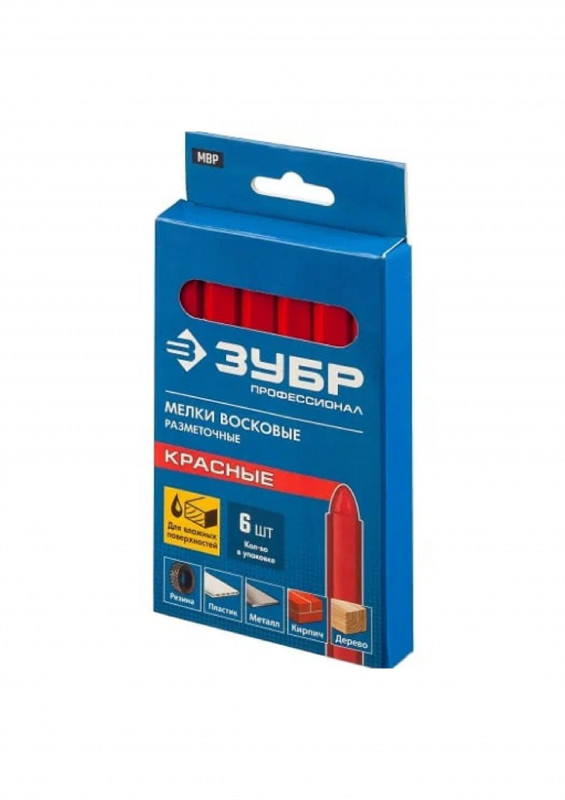Красные восковые разметочные мелки ЗУБР МВР в упаковке 6 шт 06330-3 незаменимы при нанесении пометок на гладкие и шероховатые материалы (металл, бетон, пластик, керамику, древесину, резину, картон и т.д.). Изделие не боится влаги и подходит для работы как на сухой, так и на влажной поверхности.